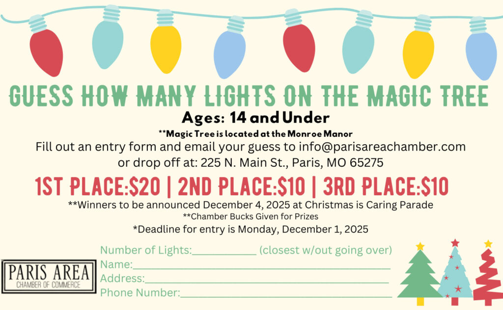 To enter your guess, fill out and submit the form below, or download a copy of the registration form, fill it out and email to info@parisareachamber.com